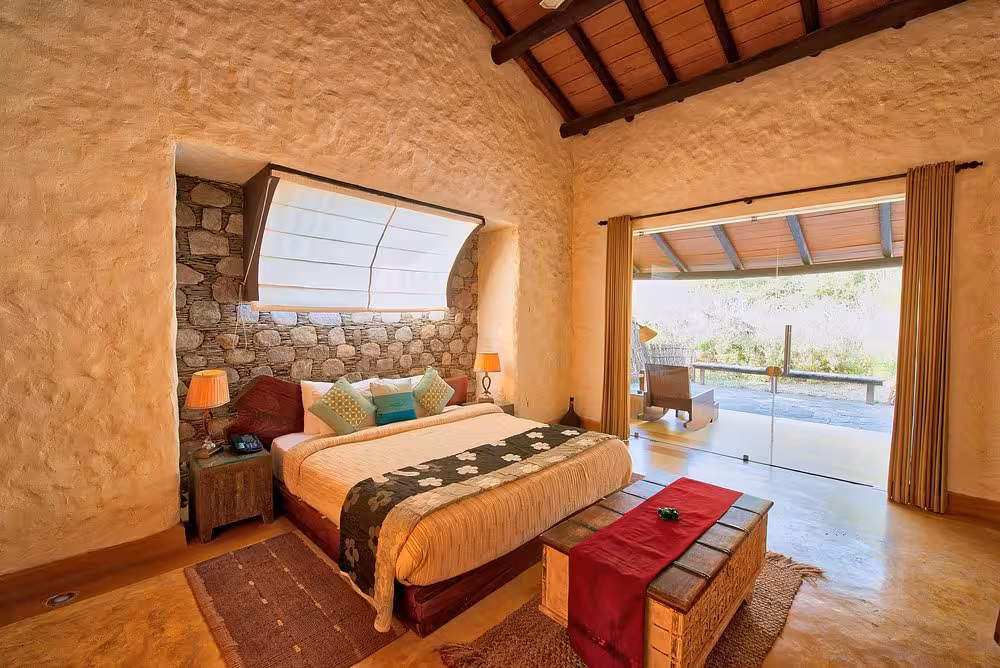 Situated in Bhaugarh Village, near Marchula, in the Ramnagar region of Uttarakhand, Paatlidun Safari Lodge lies on the periphery of the Corbett Tiger Reserve. Its elevated setting offers panoramic views of forested hills and river valleys, creating a secluded and luxurious wilderness atmosphere.